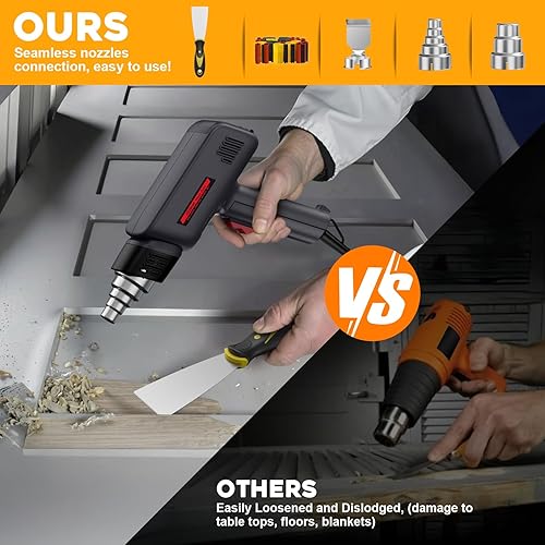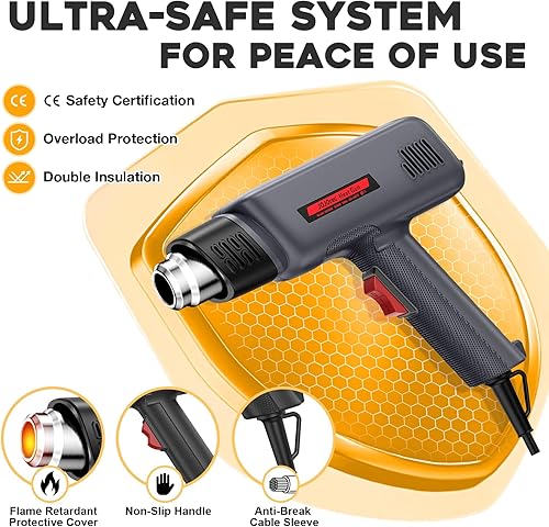 Heißluftpistole Kit, 2000W Heissluftgebläse 400℃/600℃ mit 6 Zubehör, 2 Luftstromeinstellung, Keramik-Heizkern, Elektrische Heißluftfön Schnelle Erwärmung zum Entlacken und Schrumpfen, heat gun Schwarz