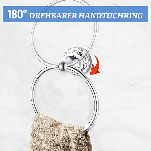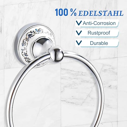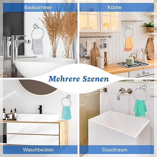 Handtuchring ohne Bohren Edelstahl, Selbstklebende Handtuchhalter Bad Rostfrei, Towel Ring Metall Kein Schaden Wandmontage, Towel Ring Hook No Drill für Badezimmer Küche Duschwand, Silber
