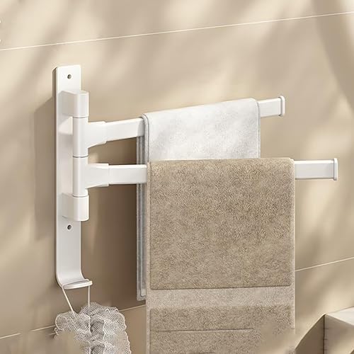 Handtuchhalter Wand ohne Bohren for Bad: 180°Drehung Badetuchhalter 3 Armig - Selbstklebend Handtuchstange for Badezimmer und Küche, Weiß