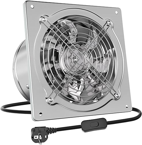 HG Power Abluftventilator 150mm Badlüfter Leiser 525m³/h mit Rücklaufklappe Leistungsstarke Metall Wandventilator mit EU-Stecker für Küche Badezimmer Garage Untergeschoss, Silber