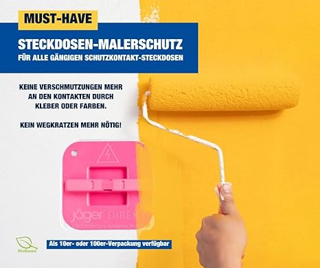 Jäger Direkt 100x Steckdosen Malerschutz, wiederverwendbar, für alle Steckdosen inkl. Schutzkontakt, ideal für Malerarbeiten, Tapezieren, Renovierungen, BioBased, Made in Germany