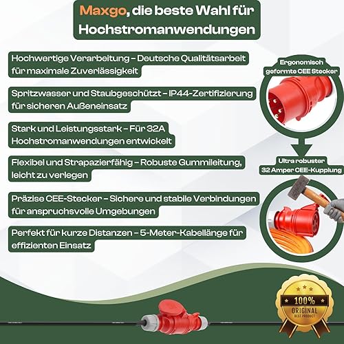 netbote24 CEE Verlängerungskabel Panzerkabel H07BQ-F 5G2,5 32A mit/ohne Phasenwender IP44 5-50m (10m Phasenwender)