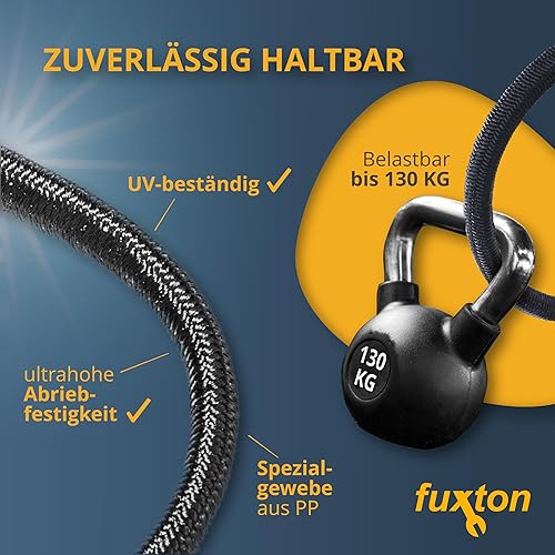 fuxton® Gummiseil (8mm x 20m), Expanderseil, Gummileine, Bungee Cord Marine, Spanngummi Meterware, schwarz