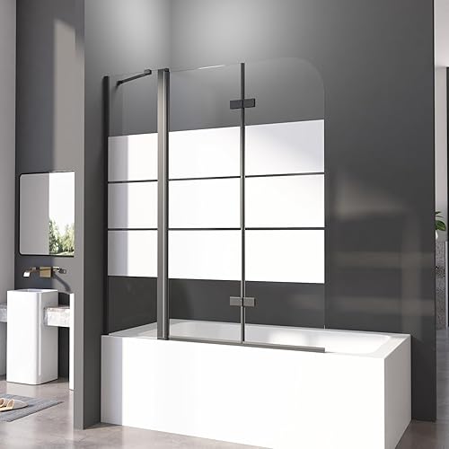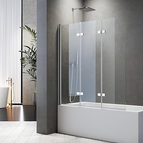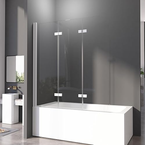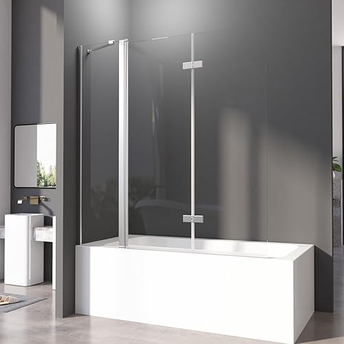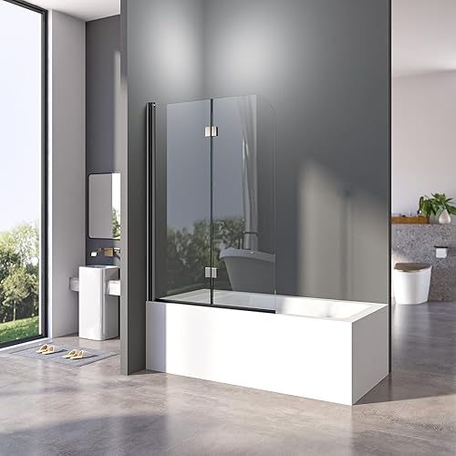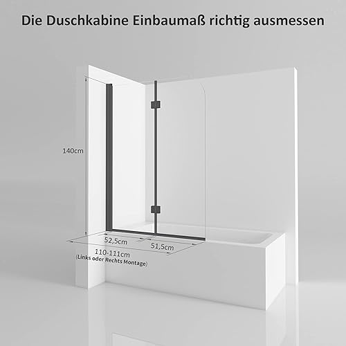 Duschwand für Badewanne 100x140 cm Badewannenfaltwand 2-teilig Faltbar 6mm ESG Glas Nano Beschichtung Duschtrennwand