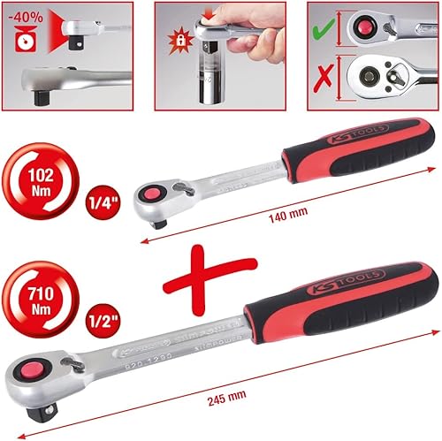 KS Tools 920.0002 SlimPOWER Umschaltknarren-Satz, 2-tlg.1/4' + 1/2'