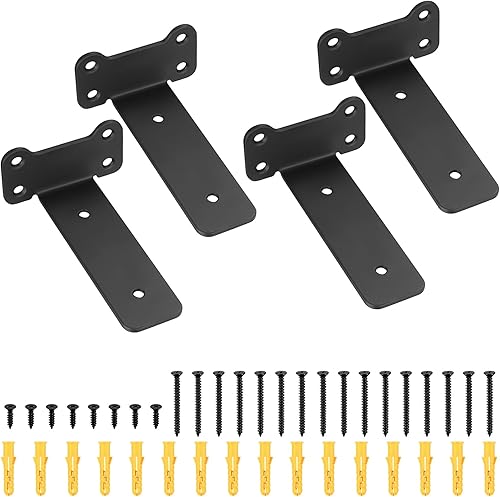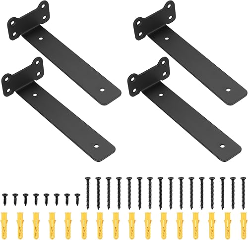 Regalträger Regalhalterungen, 4 Stk Schwimmende Regalhalter, Schwarze Metall Regalwinkel Schwerlastträger, Unsichtbare L Wandhalterung Wandträger Wandwinkel für zimmer, Büro, Küchen(150MM)