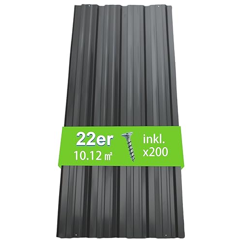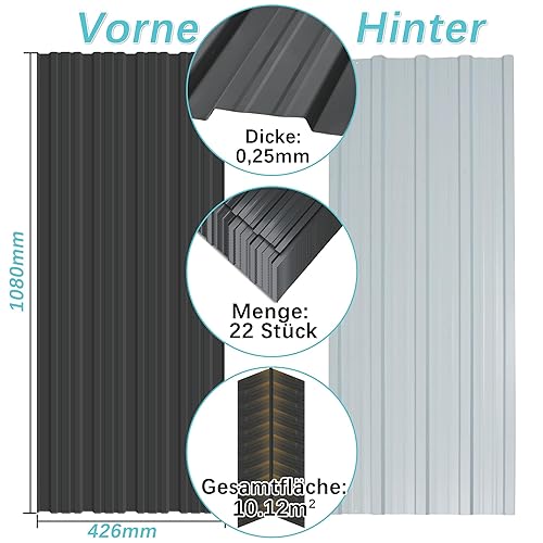 Thanaddo 22er Set Profilblech Trapezblech mit Schraube Blech Metall Dachblech Dach Platten Stahlblechdachplatten 10.12m², Legierter Stahl