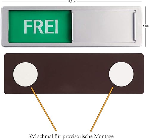 FREI - BESETZT Schild XL - Mit Schieber - Frei Besetzt Schiebeschilder - Klebeschild - 17,5 x 5 x 0,7 cm - Montage: 3M Klebefläche - Schilder mit Schiebefunktion.