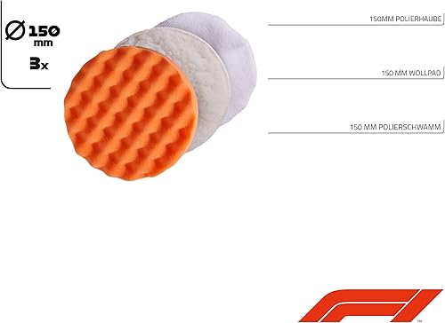 Formula 1 Poliermaschine 900 W/230V, 600-4.000 U/Min Drehzahl, Soft Start, geräuscharm, 150mm Scheiben-ø, umfangreiches Zubehör
