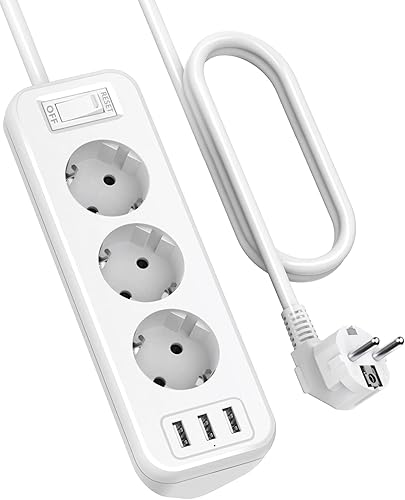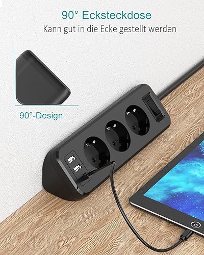 3 Fach Steckdosenleiste mit 3 USB, SUDEERY Multifunktionale Verteilersteckdose Ecksteckdose mit Schalter, Mehrfachsteckdose Überlastschutz mit 1.8m Verlängerungskabel für Küche, Schwarz