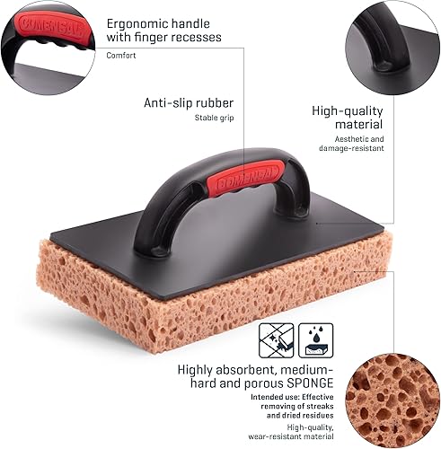 COMENSAL® Fliesenwaschbrett Hydro+ Schwammbrett - Grobporig - Saugfähig - Putzbrett - Fliesenschwamm - Hydroschwamm-Belag - Made in EU - 280 x 140 mm