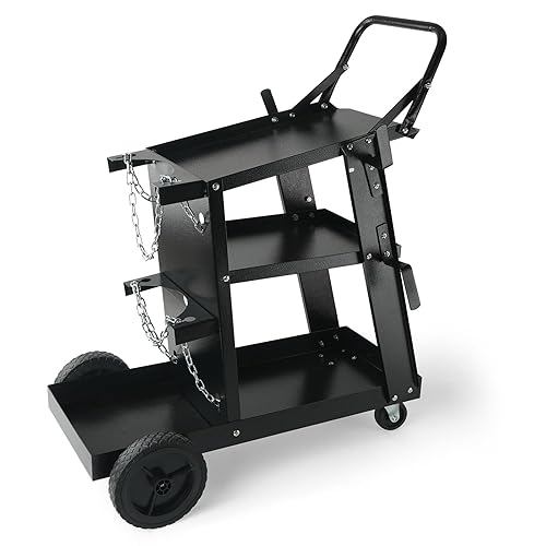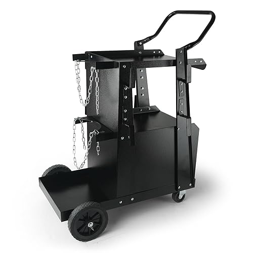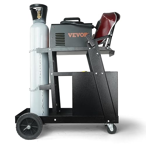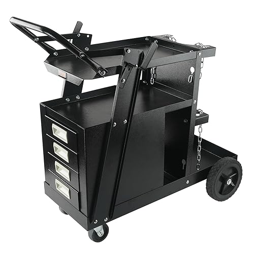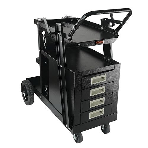 VEVOR Schweißwagen 2 Ablageflächen mit 4 Schubladen Schweißmobil Max. 100-120kg Wagen für Schweßgeräte mit 2 Gasflaschenhalterung Ideal für Handschweißen Schutzgasschweißen Argon-Lichtbogenschweißen