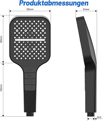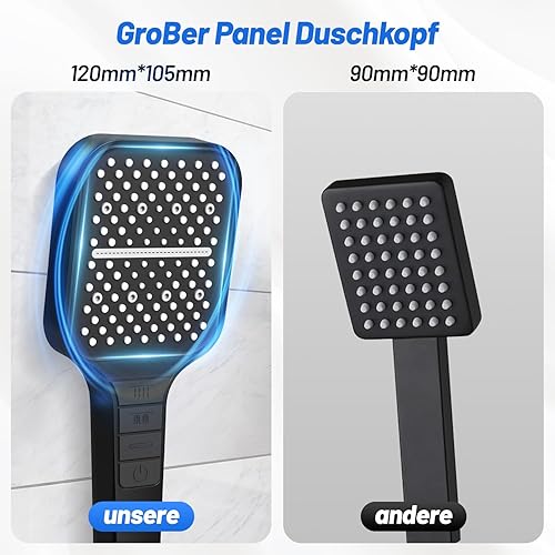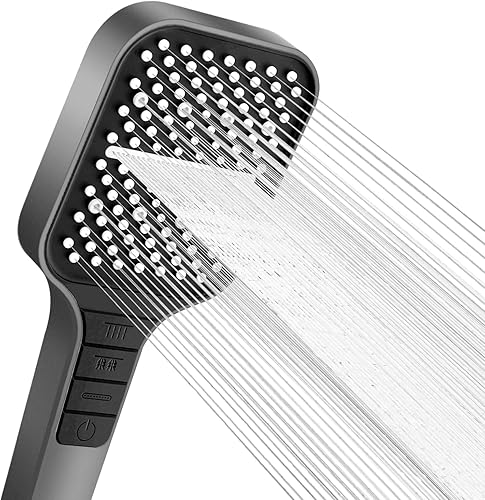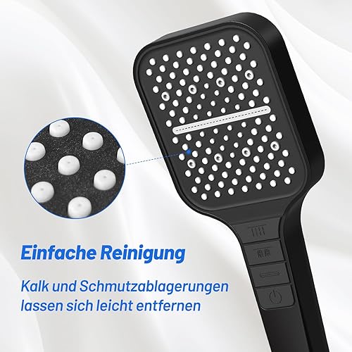 VEHHE Duschkopf Wassersparend, 7 Strahlarten Duschkopf Regendusche mit Stopptaste, Einhand-Einstellung und Anti-Stau-Silikondüse, Gross Duschbrause Druckerhöhend(Silber)