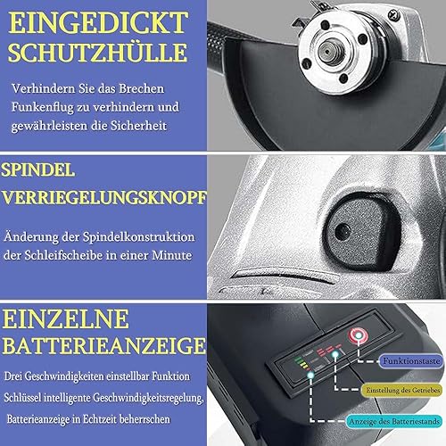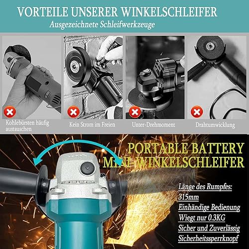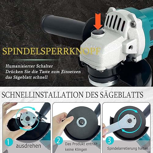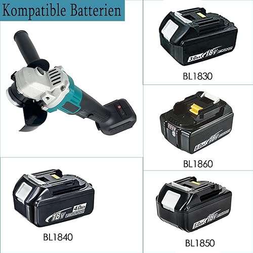 Akku Winkelschleifer 18V, Ersatz für Makita DGA504Z,125 mm Elektrischer Schleifer, mit 2 Akkus 5,5 Ah, 11000U/min Bürstenloser Motor Trennschleifer, 12 Zubehörteilen, zum Schleifen