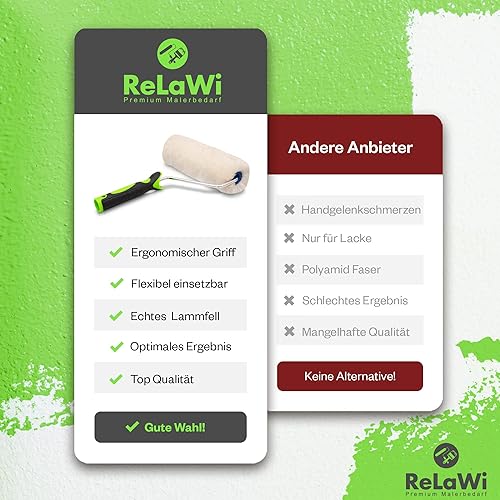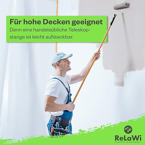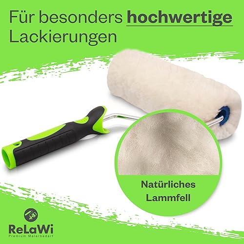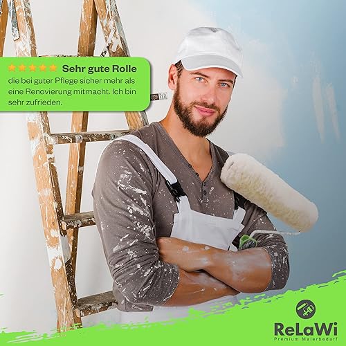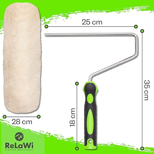 Profi Farbroller aus Lammfell mit 25cm Farbwalze - auf Teleskopstange aufsteckbar - mittelraue bis raue Untergründe - perfekt für Wandfarbe, Fassadenfarbe, Streichputz