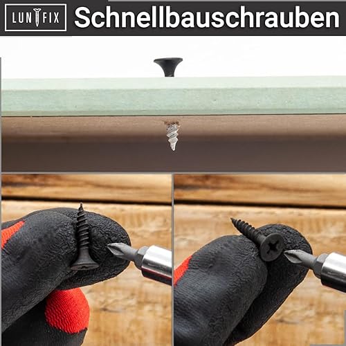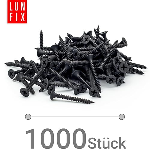 Lun Fix Schnellbauschrauben 3,5 x 35 mm (1000 Stück) | Trockenbauschrauben Mit Feingewinde | Gipskartonschrauben | Schwarz Rigipsschrauben für Gipskartonplatten, Gipsplattenschrauben, Schnellschrauben