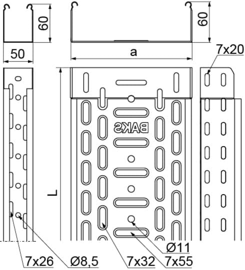 8m BAKS Kabelrinne 2000x50x60mm, Kabeltrasse, Kabelbahn mit integrierte Verbinder