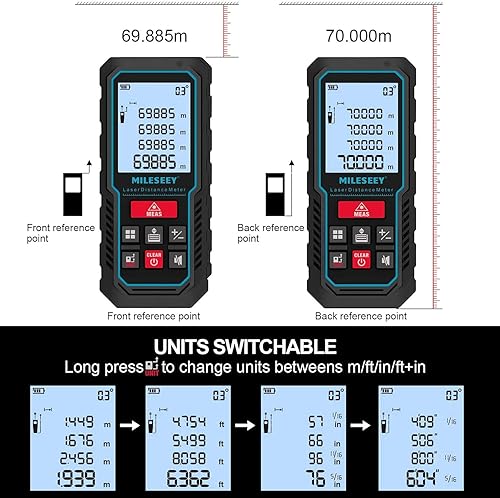 70M Laser Entfernungsmesser, MiLESEEY Lasermessgerät mit Elektronischer Neigungssensor, ±2mm Genauigkeit, Pythagoras, Fläche und Volumen, Hintergrundbeleuchtetes 2' LCD, Batterie enthalten