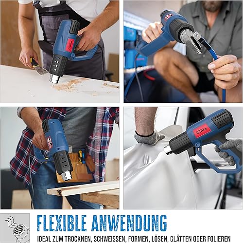 EBERTH Heißluftpistole Heißluftfön Heißluftgebläse Elektrisch 2000W Digital mit LCD (Temperatur Einstellbar von 80-600°C, Anti Rutsch Griff, Inklusive Koffer und Zubehör, 4 Spachtel und 4 Düsen)