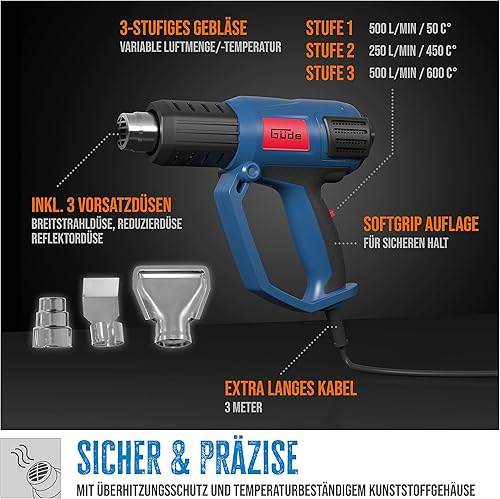 Güde 58190 Heissluftgebläse HLG 600-2000, 2000 W, 230 V, Blau, 8 Stück