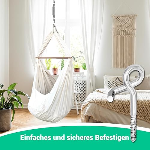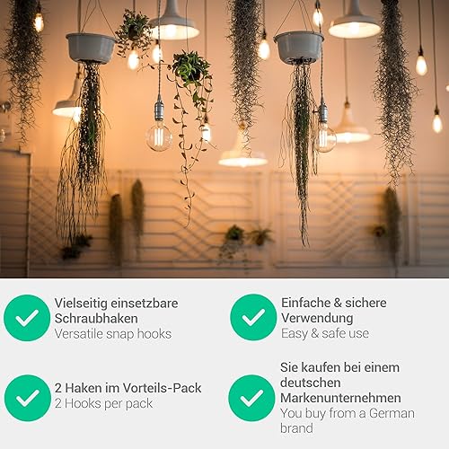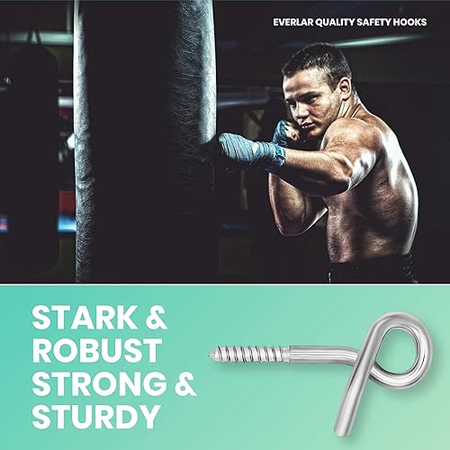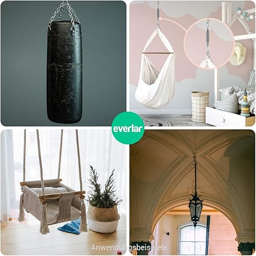everlar® Sicherheits Schraubhaken M10 I 2 Stk. I Hochfeste Deckenhaken mit Gewinde I Sicherheitshaken für die Verwendung in Holz & mit Dübel in Stein & Beton