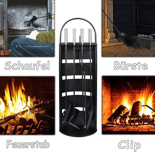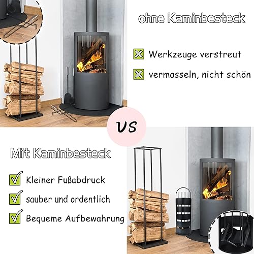 NAIZY Kaminzubehör 5 teilig Edelstahl Kaminbesteck mit Beschichtet und Sichtschutz für Küche Haushalt Wohnen Wohnaccessoires Deko Kaminreinigungsset, Silber (Typ A)