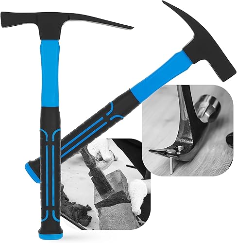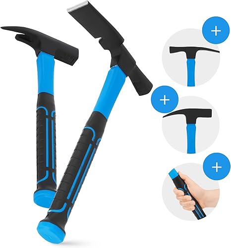 2x Hammer Fiberglasstiel 600g Maurerhammer Ziegelhammer Baumhammer Steinhammer Zimmermannshammer Klauenhammer Latthammer Anti-Vibration Ergonomischer Vibrationsdämpfung Antirutsch Griff