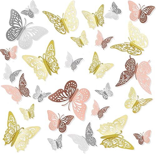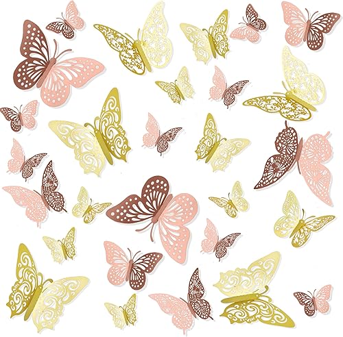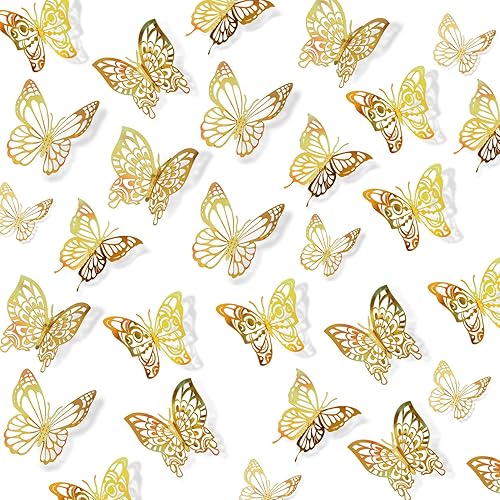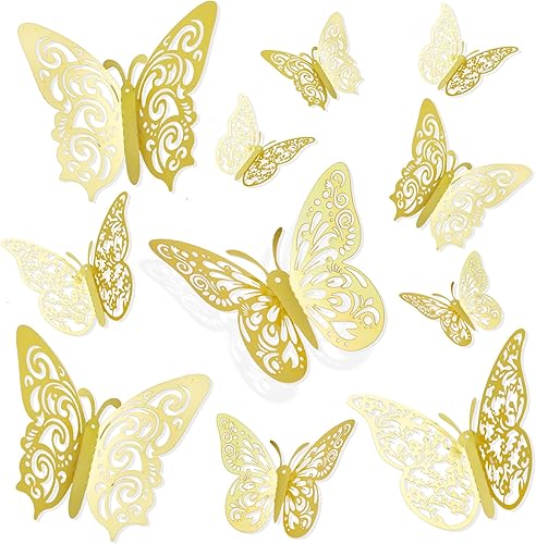 Schmetterlinge Deko,Schmetterling,72 Stück Deko Schmetterlinge,Mädchen Zimmer Deko,Schmetterling Sticker,Zimmer Deko Teenager Mädchen,Gold Deko,Wanddeko Badezimmer,Wandsticker Mädchen,3D Aufkleber