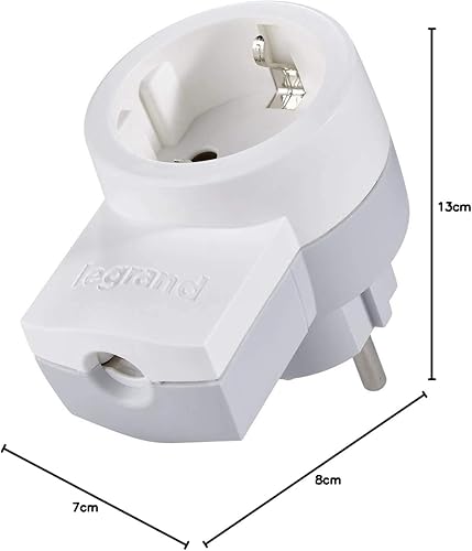 LEGRAND, Schutzkontakt-Stecker mit Steckdose, Doppelfunktionsstecker, Deutscher Standard, 2P + E, 16 A, 230 V, max. 3680 W, mit Kabelanschluss bis 3 x 1.5 mm², Farbe: Weiß/Grau, 050462
