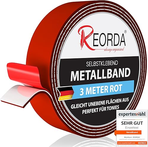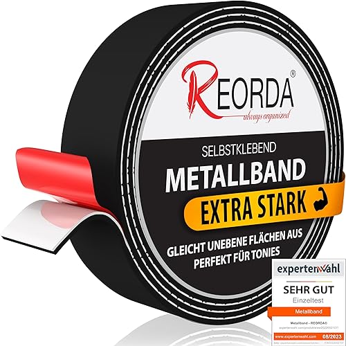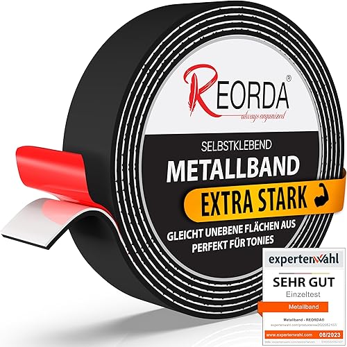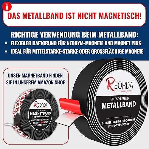 REORDA Metallband selbstklebend Weiß - Ideal für Tonies®-Figuren & -Regale - Magnetband für Magnete I Ferroband I Magnetband selbstklebend I Eisenband (3m)