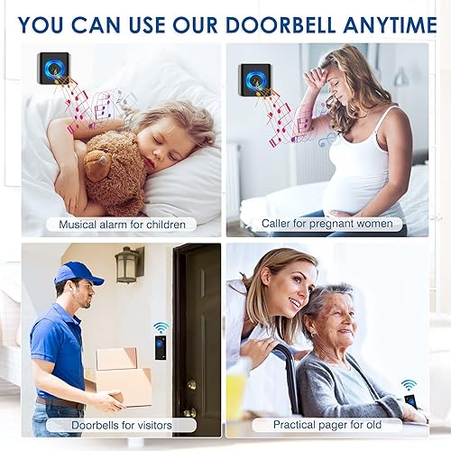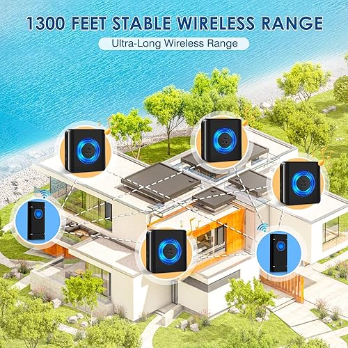 Funkklingel, Satisure Wasserdicht Türklingel Funk Set 400M/1300FT Reichweite, Haustür Klingel IP55 Aussen/58 Melodien/5 Lautstärkestufen(2 Sender und 4 Empfänger)