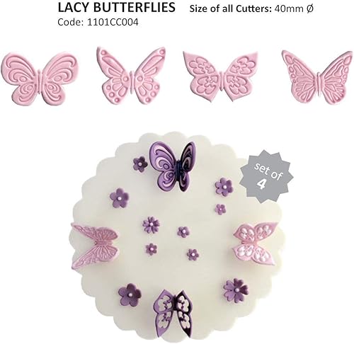 PME 1101CC004 Jem Spitzenartige Schmetterlingsausstecher, Sortiment, Kunststoff, Ivory, 9 x 1 x 25 cm, 4-teilig