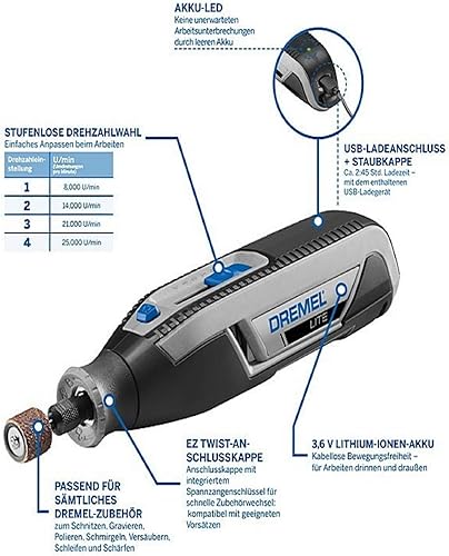 Dremel Lite 7760 Akku Multifunktionswerkzeug 3.6V, Set mit 15 Zubehörteilen + Dremel Krallenpflegeschutz Aufsatz AT02-PGK zum sicheren Schärfen der Krallen von Katzen und Hunden