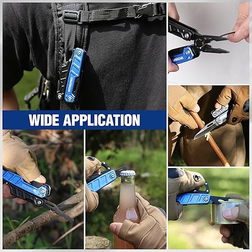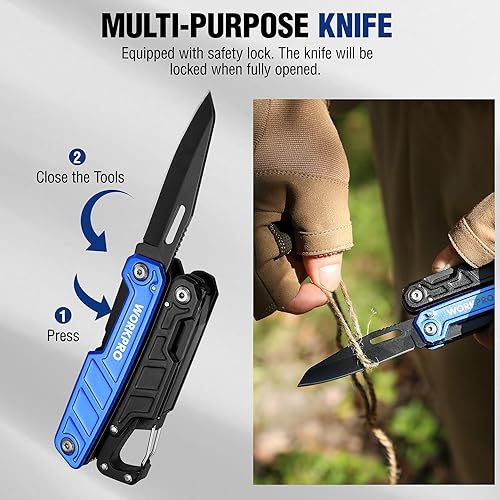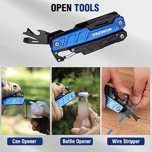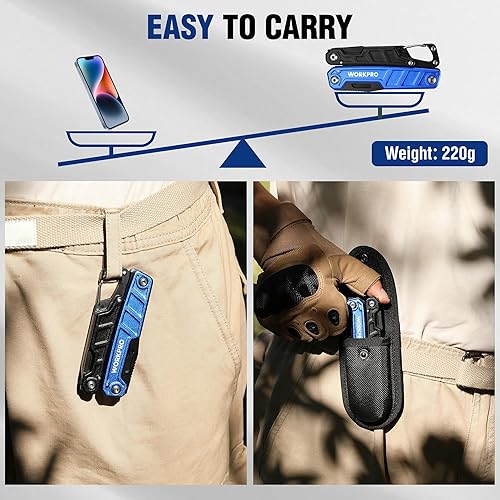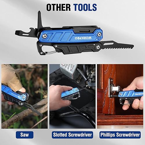 WORKPRO Multifunktionszange 11-in-1 Faltbar Multitool Werkzeug Edelstahl Multifunktionswerkzeug mit Karabiner Spitzzange Kabelschneider Säge Flaschenöffner Schraubendreher für Outdoor mit Tragtasche