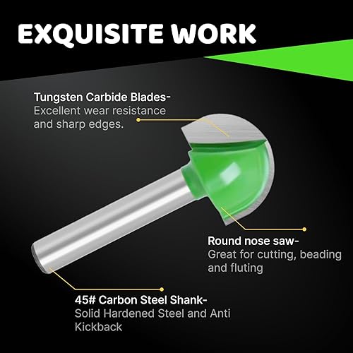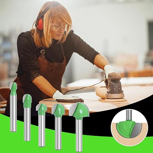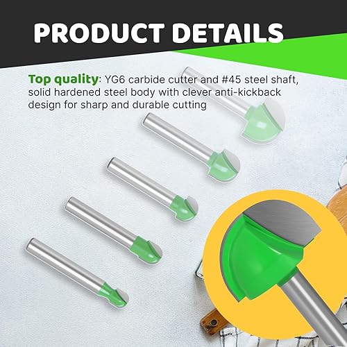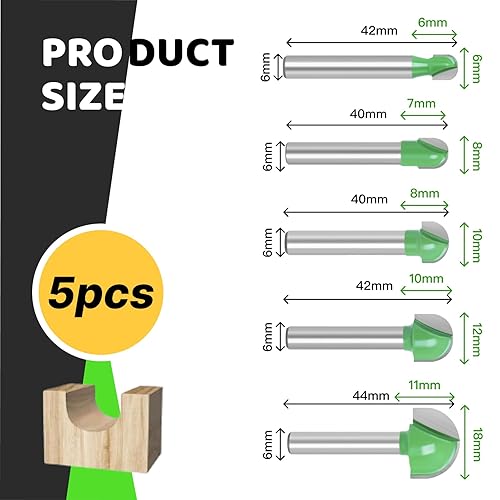 Hugwish 5 Fräser für Oberfräsen, Rundfräser 6 mm, Fräser mit rundem Boden, Holzfräser, Hohlkehlfräser, Kugelkopffräser Holz 6mm / 8mm /10mm / 12mm / 18mm
