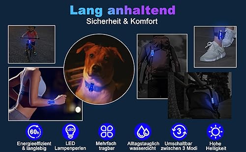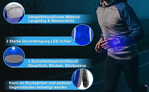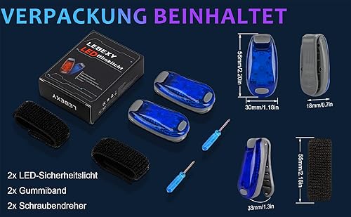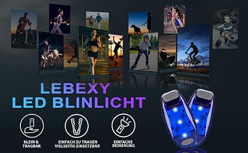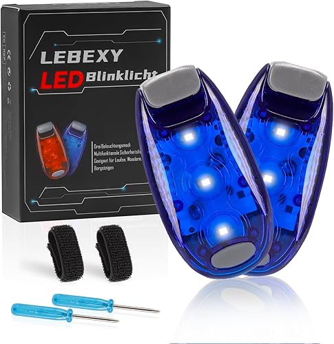 LEBEXY LED Blinlicht Sicherheitslicht 2 Stück Set | Drei Lichtmodi | Sicherheit Licht für Kinder Schulranzen |Ideal Sicherheitswarnleuchte für Kinderwagen, Radfahren, Wandern, Camping, Haustiere, Blau