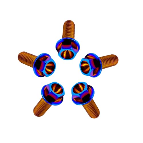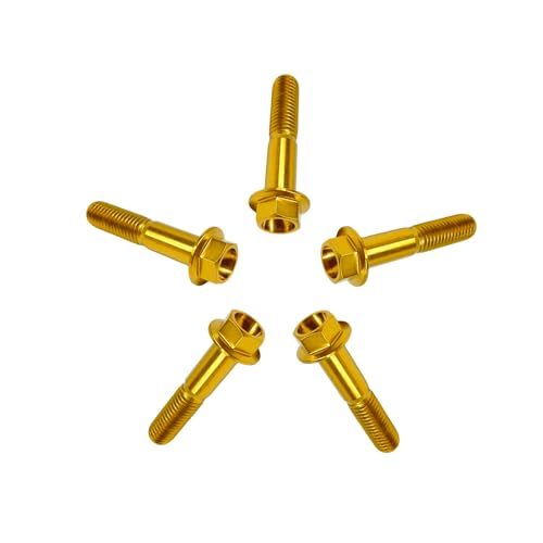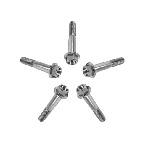 RISON-Titanium Sechskantschrauben mit Flansch M10x1.25x50mm, 5 Stück Titanschrauben Sechskant Kopf Schrauben, Flanschschrauben Titanbolzen Maschinenschrauben für Motorrad, Fahrrad Modifikation