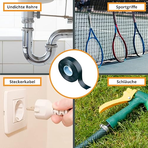 Gocableties - Selbstverschweißendes Klebeband -25 mm x 10 m - Isolierband und Dichtungsband für wasserdichte Reparaturen - Schwarz - 2 Rollen