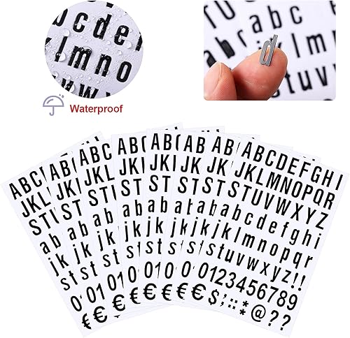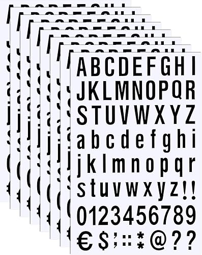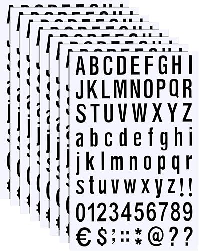 8 Blätter Selbstklebendes Vinyl Buchstaben Zahlen Kit, Briefkasten Nummern Aufkleber für Postkasten, Schilder, Fenster, Tür, Autos, Lastwagen, Heim, Adress Nummer (Schwarz, 1/2 Zoll)