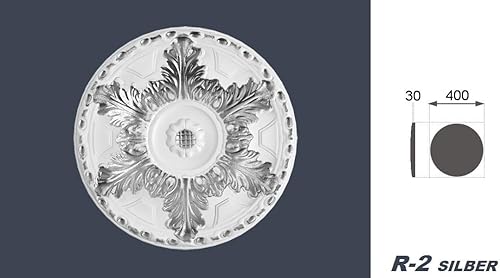 MARBET DESIGN Stuckrosette aus EPS Styropor - Deckenrosette silber, Zierelement, Stuck (R-30 Ø 60cm) Wanddekoration Schlafzimmer Lampe Rosette rund