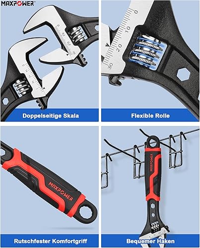 MAXPOWER Schraubenschlüssel Set verstellbarer Rollgabelschlüssel inkl. 150, 200, 250 mm 3-teilig Adjustable Wrench Einmaulschlüssel