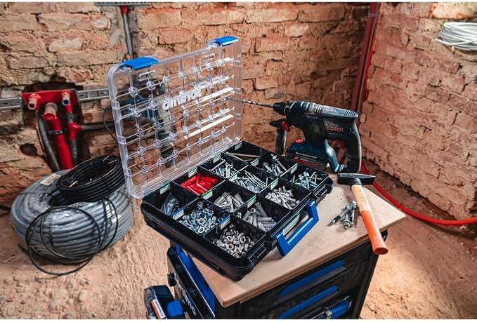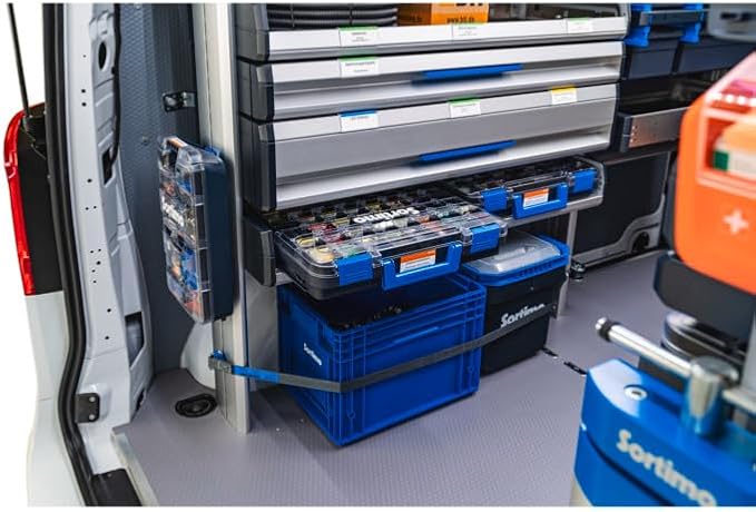 Sortimo T-BOXX 320 – Inkl. 12 Insetboxen H63 & 8 Trennwände – Transparenter Deckel für schnellen Überblick – Robuster, leichter Kunststoff – Kompatibel mit Fahrzeugeinrichtungen & WorkMo