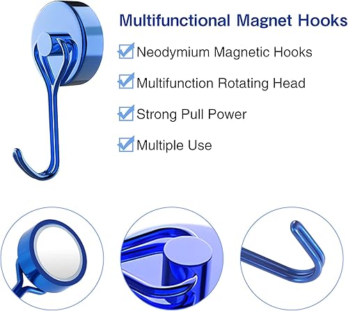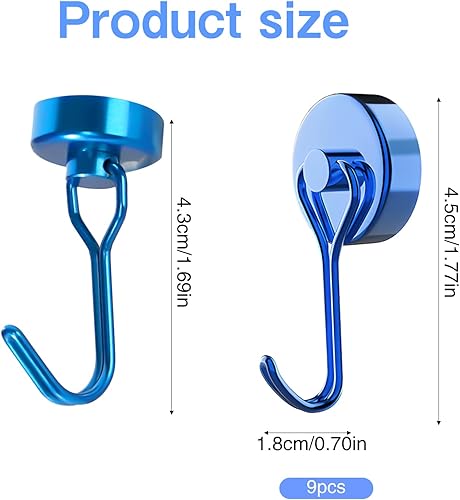CUINIUNAID Magnet Haken 15kg Magnethaken Extra Stark 360 Grad Drehbar Neodym Magnete mit Haken Super Starker Magnetischer Haken für Küche Schlafzimmer Büro Schließfächer Kühlschrankmagnet (9 Stück)