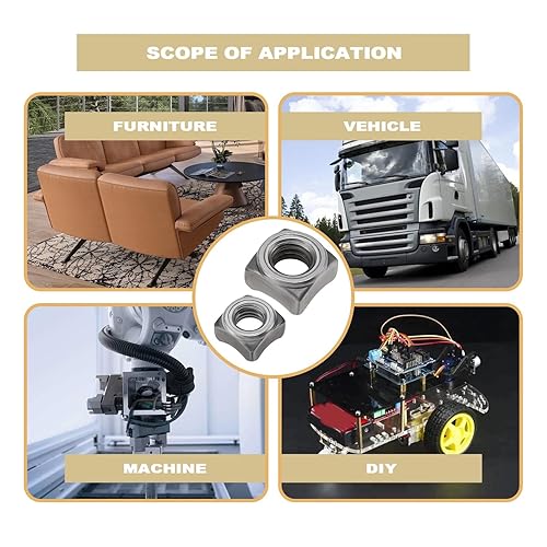 LT Easiyl Vierkantmuttern aus Stahl, M5 x 0,8 mm, M6 x 1,0 mm, M8 x 1,25 mm, M10 x 1,5 mm, Teilung, Schweißmuttern für Rohre, Möbel, Tische, Regale, 100 Stück