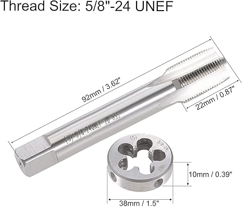 sourcing map 5/8'-24 UNEF Gewindebohrersatz, HSS Maschinengewindebohrer mit Rundgewindebohrer, Recht Hand