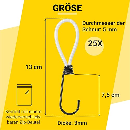 PRETEX Spanngummi mit Haken - Set mit 25 Stück x 23cm Expander mit Öse - Hochbelastbare Gummispanner Perfekt als Planenspanner für Camping oder zur Transportsicherung für Anhänger