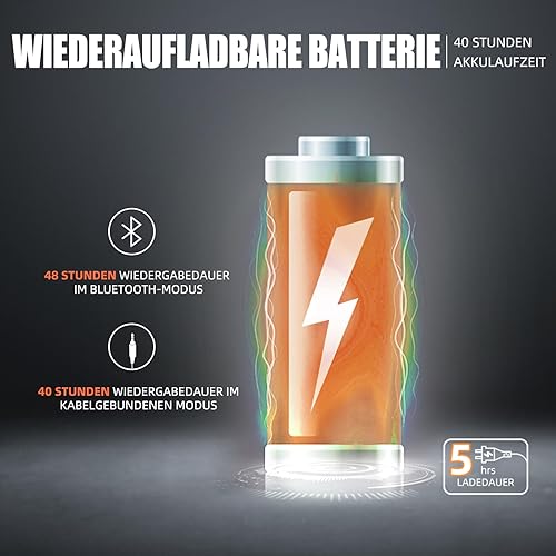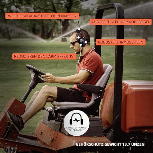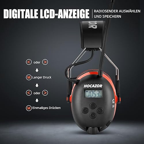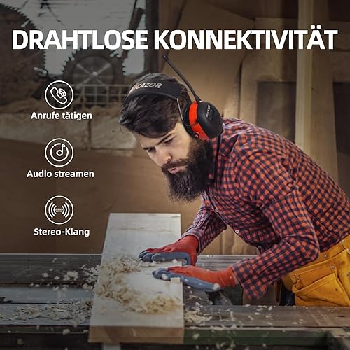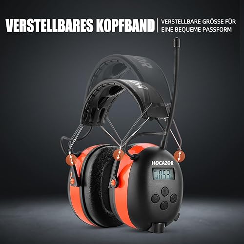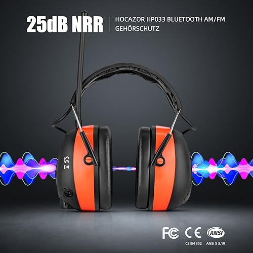 HOCAZOR HP033 Gehörschutz mit Bluetooth 5.3, Gehörschutz mit Radio FM/AM Ohrenschützer Eingebautem Mikrofon und Lärmreduzierung SNR31dB/NRR25dB Orange Lärmschutz Kopfhörer Bluetooth