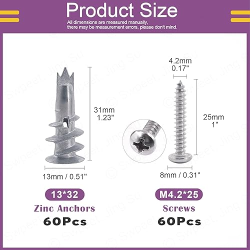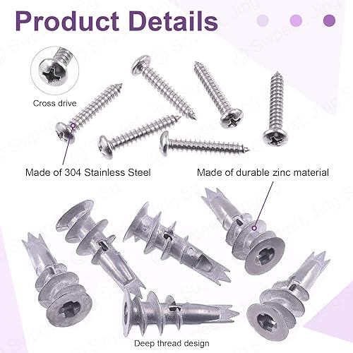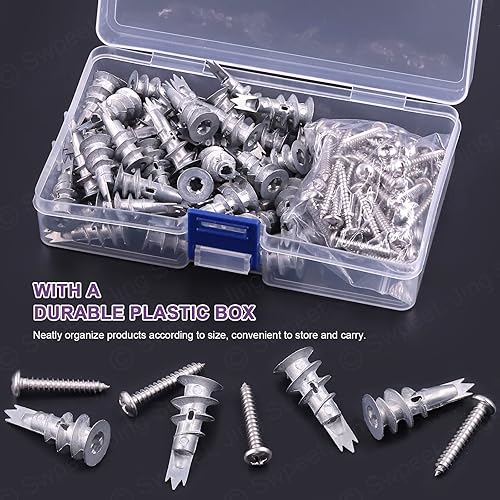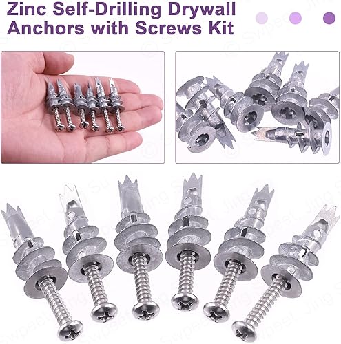 Swpeet 120Pcs Heavy Duty Zink selbstbohrende Trockenbau-Anker mit #8 x 1-1/4'' Schrauben Kit, keine Vorbohrung Loch Vorbereitung erforderlich - selbstschneidende Trockenbau-Anker