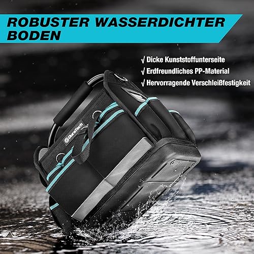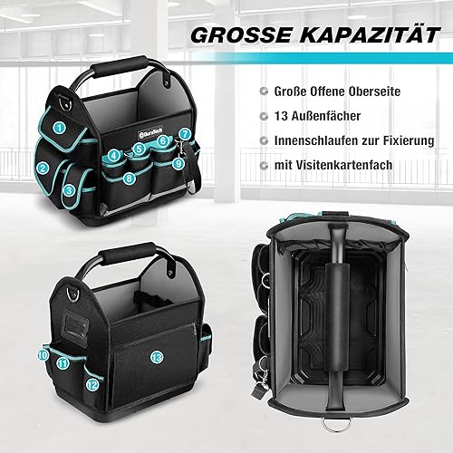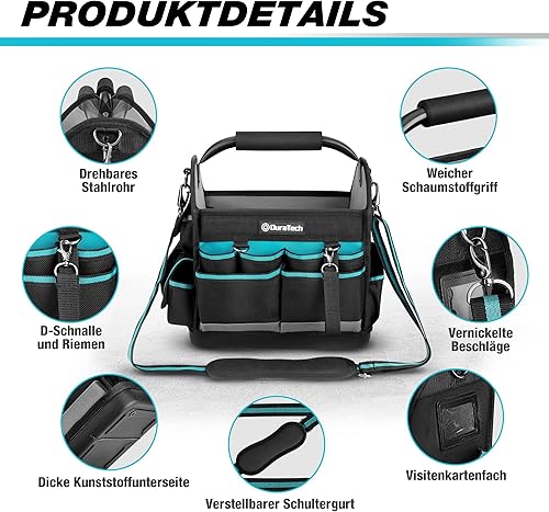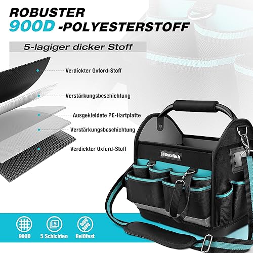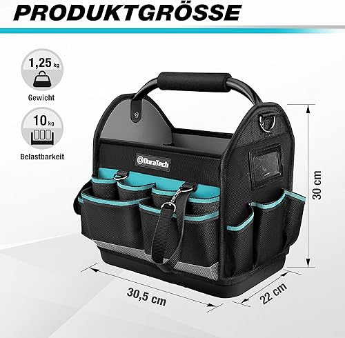 DURATECH Profi Werkzeugtasche Elektriker, Robuste Werkzeugtasche 30,5 cm mit wasserdichtem Boden & großer Öffnung, Aus 900D Polyester, Große Kapazität, Mit Stahlrohr und verstellbarem Schultergurt