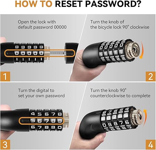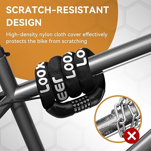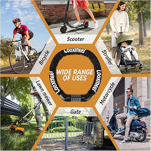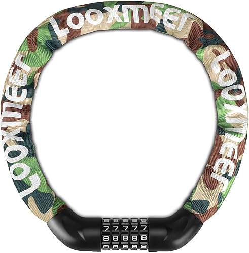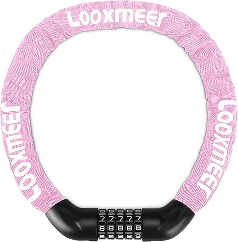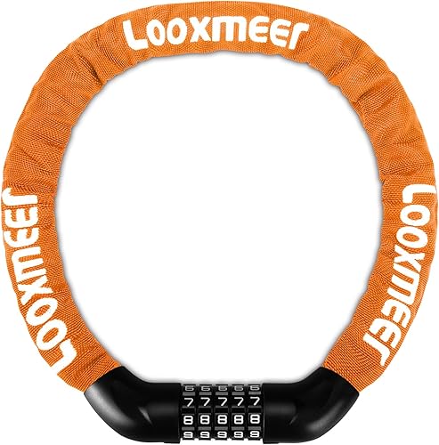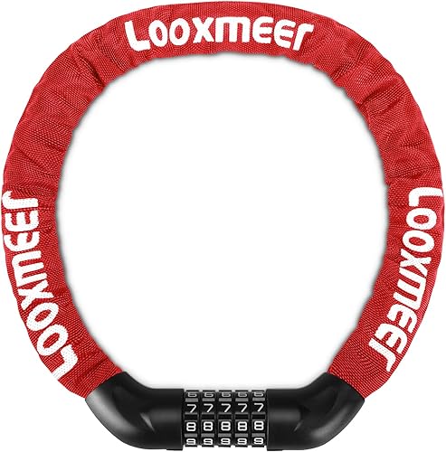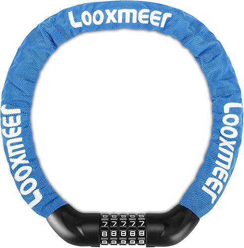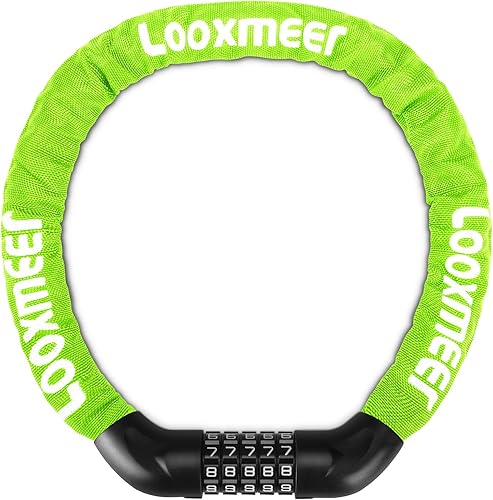 Looxmeer Fahrradschloss 12 Farben Zahlenschloss 90cm und Hoher Sicherheitsstufe, Fahrrad Kettenschloss Zahlen Code Kombination Schloss mit Gehärteter Stahlkettenglieder und 5-stelligem Zahlencode